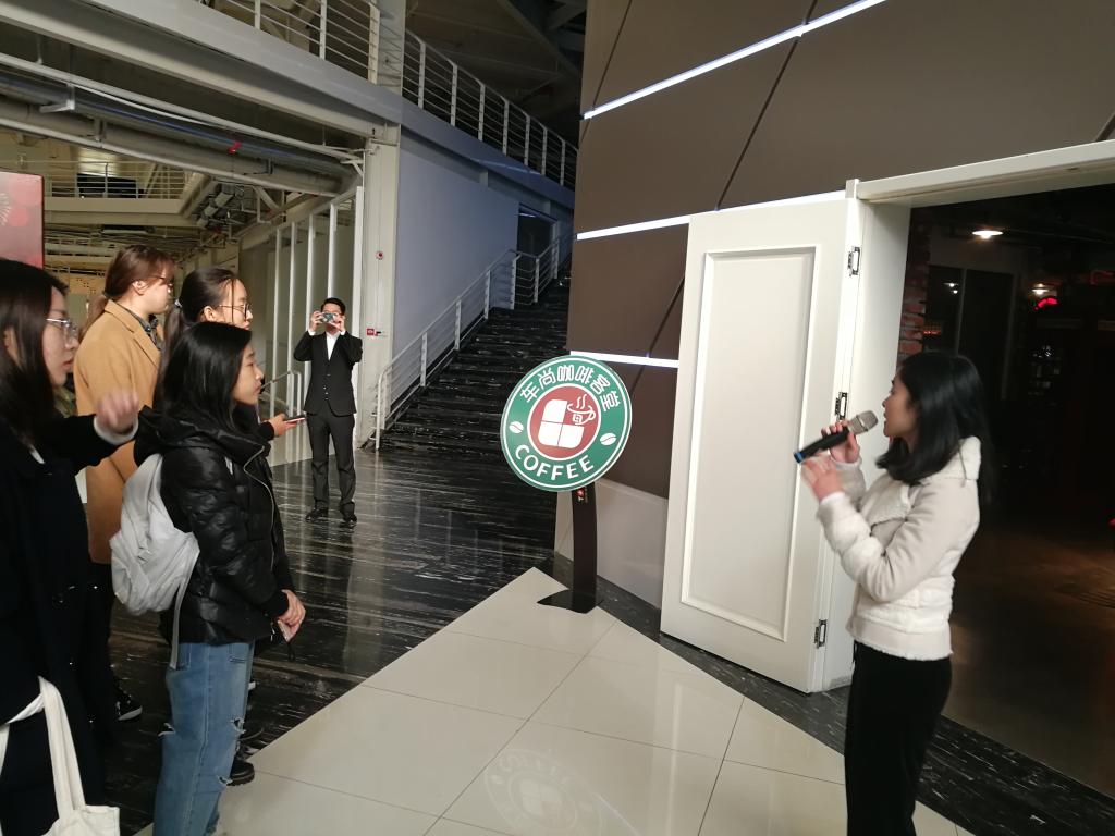 到达目的地后,由工作人员带领大家进行了参观,并热情地进行讲解。首先我们参观了车尚咖啡客堂,整个咖啡屋以汽车为主题,所有设施都与汽车零件密切相关,新颖别致。讲解员也为我们讲解了设计的理念和创新思想,令人印象深刻。