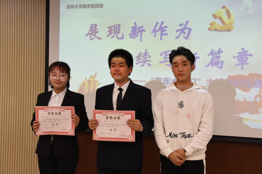 活动伊始,由主持人向在场参赛同学介绍本次演讲比赛的评委及相关评选规则。之后,由18级共22名参赛选手按照班级的顺序依次上台进行演讲,内容主要围绕本次“青年大学习”学习内容及学习感悟。评委根据参赛同学的演讲内容及现场表现给出评分,根据评分最终得出本次演讲比赛的结果。比赛过程中,选手们从容不迫,慷慨激昂,挥洒自如地展开演讲,字里行间都包含着真挚的情感,用饱满的激情,朴实的言语,表达了他们在此次“青年大学习”中的感悟。22名参赛选手结束演讲后,学生会副主席黄杰上台就此次演讲比赛中同学们的表现进行综合评价并提出了一些改进的建议,同时黄杰也表示希望同学们可以在今后的学习生活中参与更多的活动,在活动中得到成长。最后,本次演讲活动现场得出第一名一位,第二名两位,第三名三位,由评委颁奖并合影留念。
