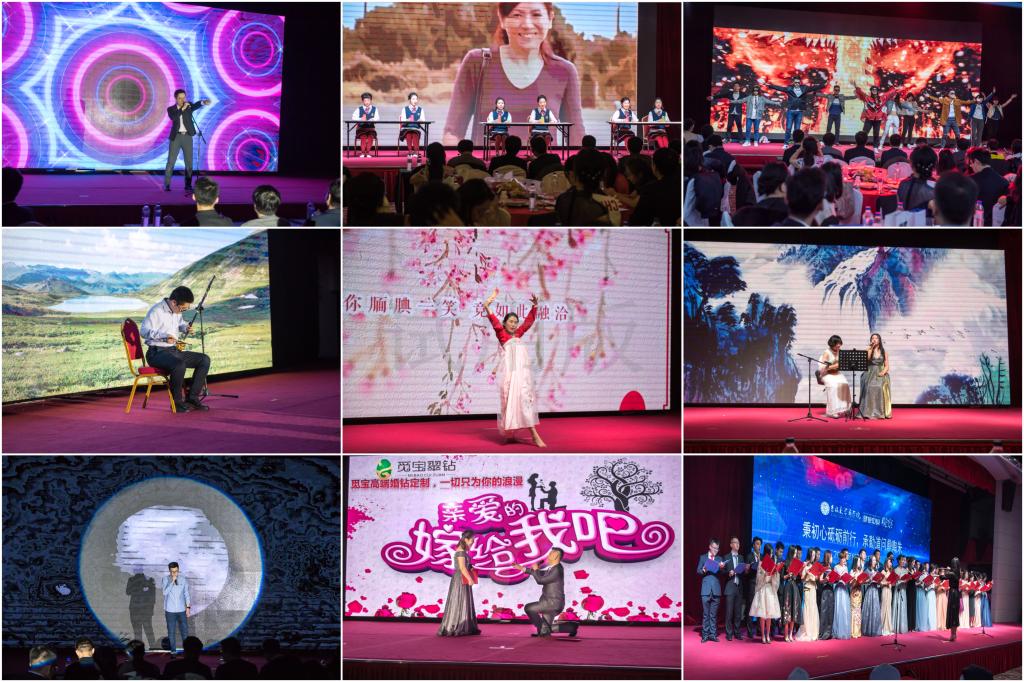 伴随着主持人“演出正式开始”的声音,晚会正式拉开帷幕。一曲《王妃》独唱瞬间点燃全场气氛;一首《稻香》伴随着身着校服的演员们用杯子敲击出的节奏,将我们踏入职场的那颗心,又带回了曾经青涩美好的学生时光;舞蹈串烧《流金岁月》,让我们重温了70后、80后和90后的青春流行文化;二胡独奏《二泉映月》、独舞《浪人琵琶》与尤克里里弹唱的《中国风串烧》,让在座的观众着实的接受了一番中华民族传统文化的洗礼;一首《海阔天空》,仿佛也将所有MBA学子内心对提升自我的渴望和对未来美好憧憬的呐喊淋漓尽致的演绎了出来;校园是纯洁的,学习生活时美好的,不期而遇的爱情更是可遇而不可求的,诗朗诵《致橡树》,就将这三种美完美地结合在了一起,最后那一刹那的单膝跪地,则是对这些美丽做出的一生的承诺......