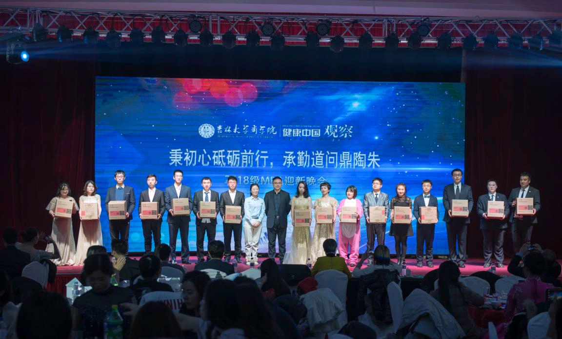 荟职场精英才华,展商院学子风采,在院领导与专业学位教学办老师们的支持下,在MBA学生会主席团的领导下,在全体2018级MBA同学的热情期盼中,由健康中国观察杂志社独家冠名赞助的“秉初心砥砺前行,承勤道问鼎陶朱”2018级MBA迎新晚会及新年晚宴,于12月15日在长春华天大酒店隆重举行。