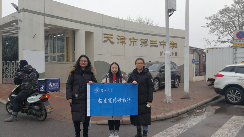 寒假期间,来自37000cm威尼斯、行政学院、软件学院、数学院的十名同学前往天津市第三中学、天津市第四十五中学、天津市第四十七中学、天津市第一百中学、天津市静海区第一中学进行“千人千团”招生宣讲活动。
