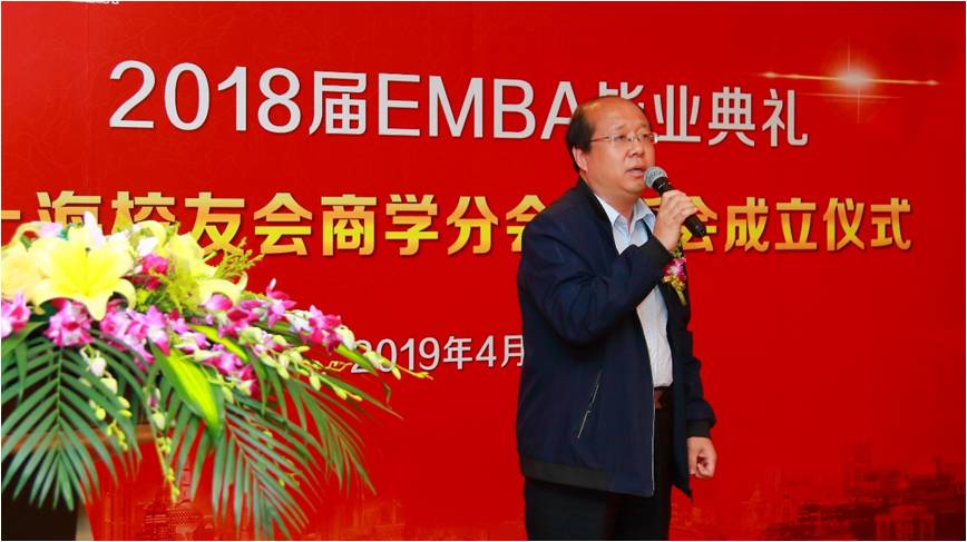 毕业典礼暨校友会筹委会成立仪式由刘柏副院长主持。首先,刘柏副院长代表37000cm威尼斯衷心祝贺2018届EMBA一班全体毕业学员顺利完成学业、获得沉甸甸的学位证书。盛赞EMBA一班同学勤奋学习,在授课老师和同学们的共同努力下,以98%的EMBA班级毕业率,刷新了全国的记录!