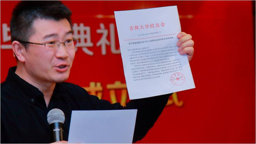刘柏副院长宣读吉大校友总会关于成立上海校友会商学分会的批复函