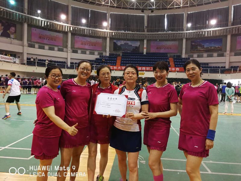赛场上,身着靓丽服装的选手们活力四射,风采无限。他们携手并肩,沉着应战,将高远球、扣杀、吊球各路球技施展的淋漓尽致,高手过招,赢得了观众们的阵阵喝彩。三天的激烈角逐,队员们一路过关斩将,突出重围,最终获得女子团体赛乙组第五名、男子团体赛进入乙组十六强的好成绩。
