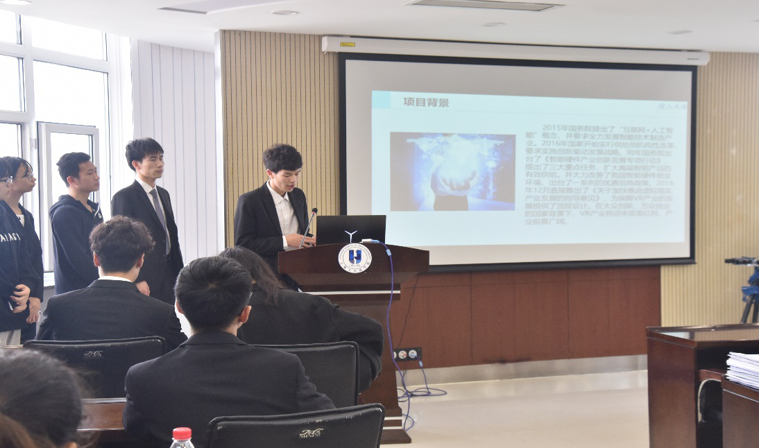 答辩分为两个部分:陈述展示3分钟,评委问答2分钟。35组队伍先后上场向评审专家阐述本队“互联网+”参赛项目,参与答辩的参赛项目涵盖农业园林、交通出行、制药保健、尖端科技、教育教学等诸多方面。各组选手讲演本组的创新之处,三位评审专家就各组项目进行提问或提出一些建议,现场气氛紧张而又活跃。