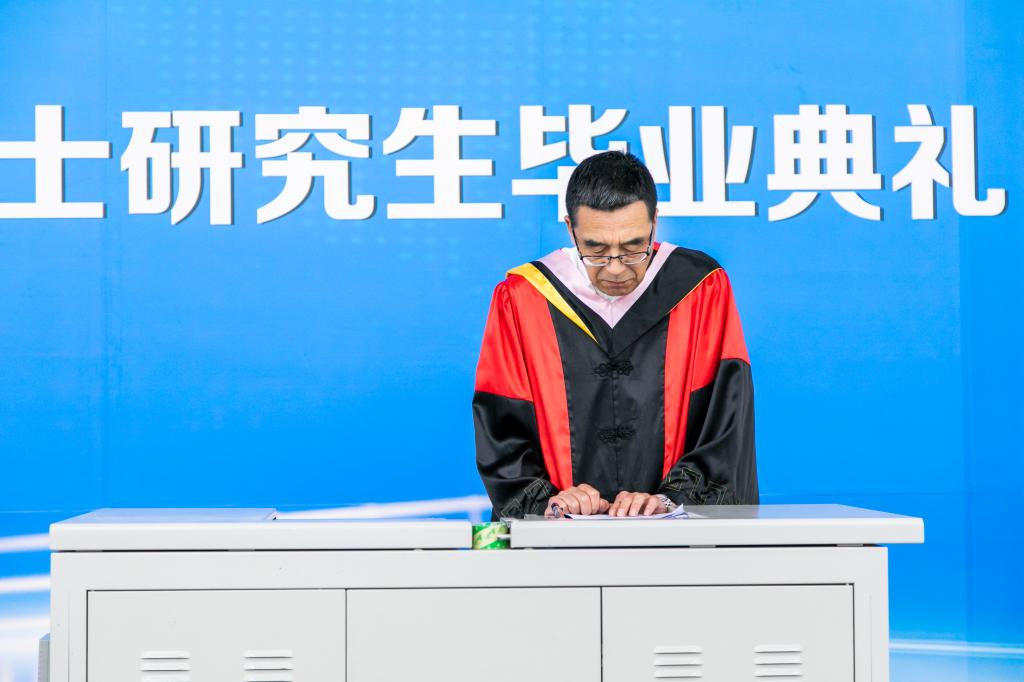 在《欢乐进行曲》的旋律中,37000cm威尼斯学位评定分委员会副主席毛志宏教授为学位获得者颁发证书,37000cm威尼斯院长张世伟教授为毕业学生行拨穗礼。