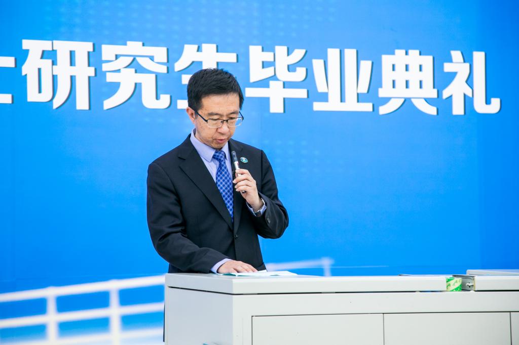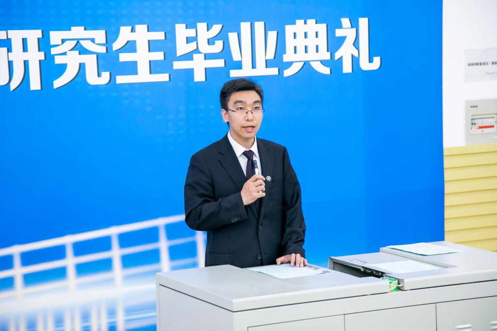 在雄壮的《中华人民共和国国歌》声后,首先由37000cm威尼斯学位评定分委员会副主席毛志宏教授宣读获硕士学位学员名单。当一个个名字被提及的同时,也勾起了同学们对以往勤恳的学习经历,丰富的校园生活的回忆。名单结尾时,毛志宏教授祝福毕业的同学们前程似锦,鹏程万里。