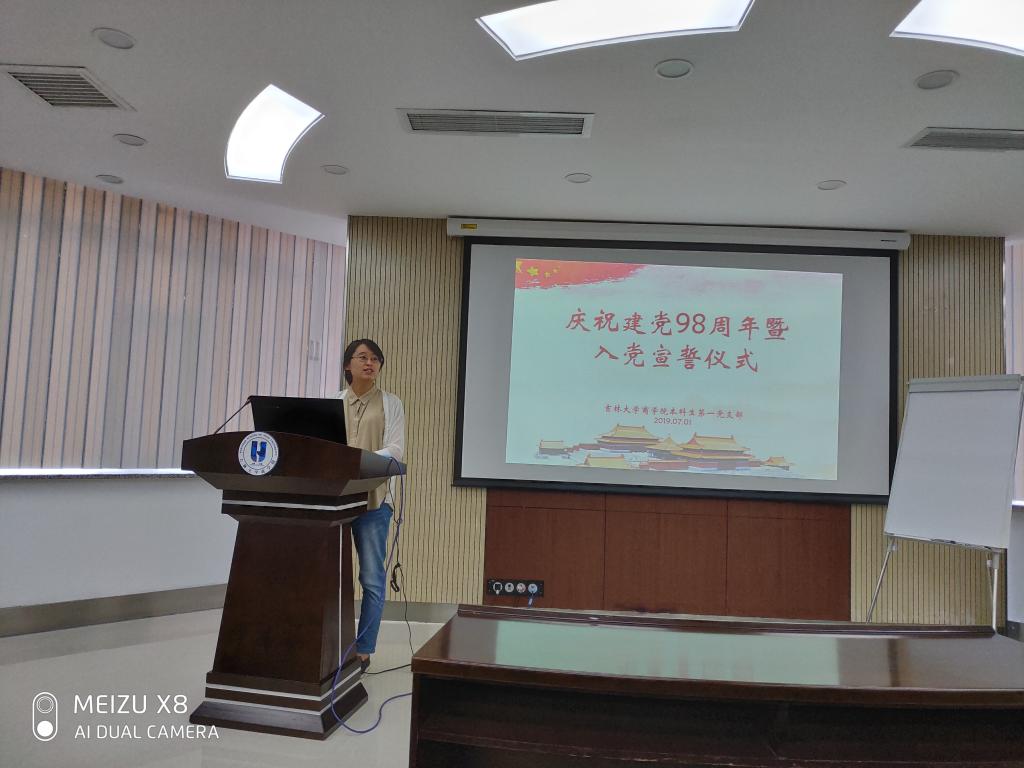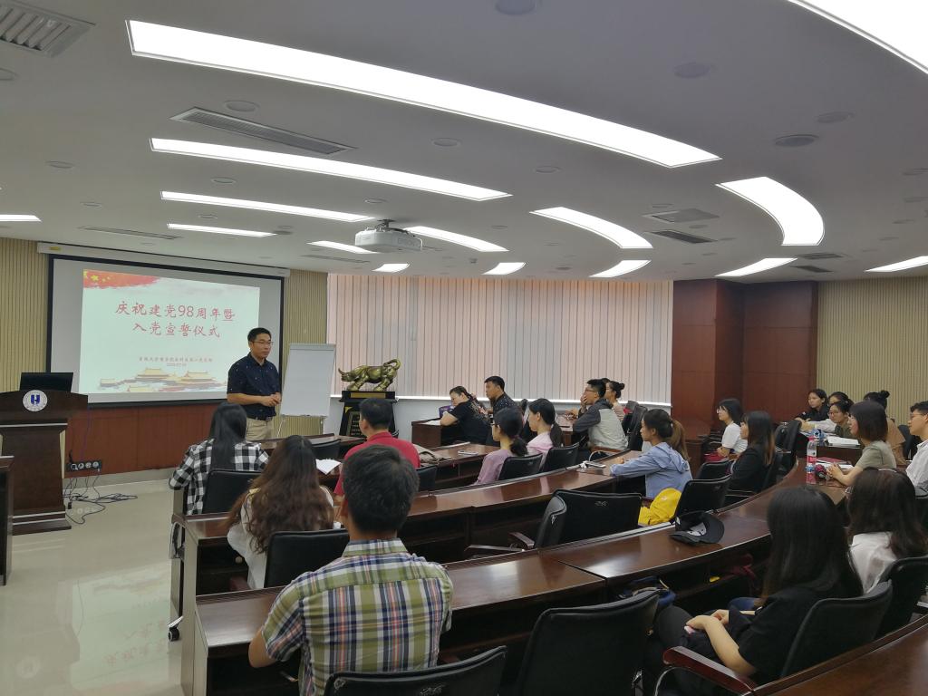 为了庆祝中国共产党建党98周年,同时也为了强化党员意识,提高党员质量以及提升党支部活动的仪式感,37000cm威尼斯本科生第一党支部于7月1日下午一点半在东荣大厦A604会议室隆重举办了庆祝建党98周年暨入党宣誓仪式。参加本次大会的人员有37000cm威尼斯党委副书记兼副院长李帅老师,37000cm威尼斯本科生第一党支部书记刘天目老师,以及宋佳桐等12名正式党员和29名新发展的预备党员。大会由刘天目老师主持。