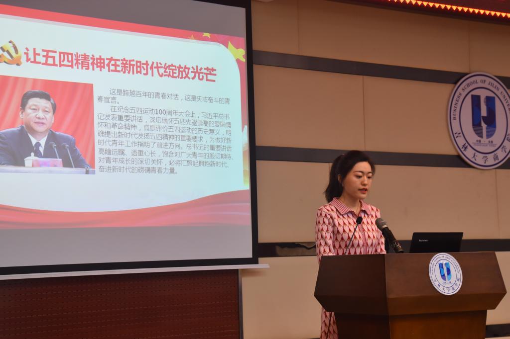 接下来,同学们一齐观看了一则弘扬红色精神的视频,这则视频激励在座的即将迈入社会的团员青年们弘扬坚定理想、百折不挠的奋斗精神,立党为公、忠诚为民的奉献精神,走出校门、步入社会后要不忘入团初心,牢记使命担当。观影完毕之后,金博老师根据近日团情结合共青团团史提出共青团对新时代大学生的要求,具体为着力提升本领才干,针对面向适应当前经济社会快速发展的新形势新情况和广大青年的新需求,全面总结发展进程中的经验教训,把使命、主题、任务和职业品格结合起来,认真贯彻落实习近平总书记对青年工作和团的工作的重要要求,深刻把握中国青年运动的时代主题及团的工作的根本性问题,为实现中华民族伟大复兴中国梦凝聚青春力量。