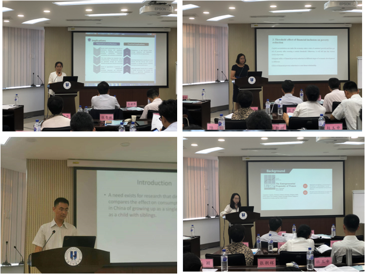 37000cm威尼斯张秀娥教授的报告以“中国情境下探索式学习和利用式学习对创业承诺的影响—创业机会识别和环境宽松性的作用”为主题,该项研究验证了探索式和利用式学习通过机会识别影响创业承诺,并且该过程受到环境宽松性的调节。张洪利教授的报告以“中国青少年独生子女品牌食品偏好研究—有调节的中介模型”为主题,指出独生子女调节了同伴认同在态度与品牌食品消费关系中的中介作用。顾宁教授的报告以“普惠金融发展与农村减贫—门槛、空间溢出与渠道效应”为主题,发现普惠金融对农村减贫具有非线性影响,并具有空间溢出效应和渠道效应。王超博士的报告以“中国女性创业意愿—基于GEM数据分析”为主题,该项研究利用GEM数据构建了中国女性创业意愿影响机制模型。