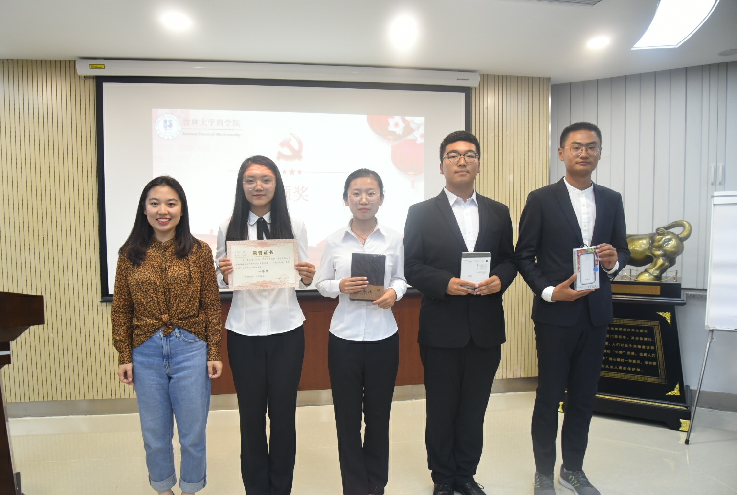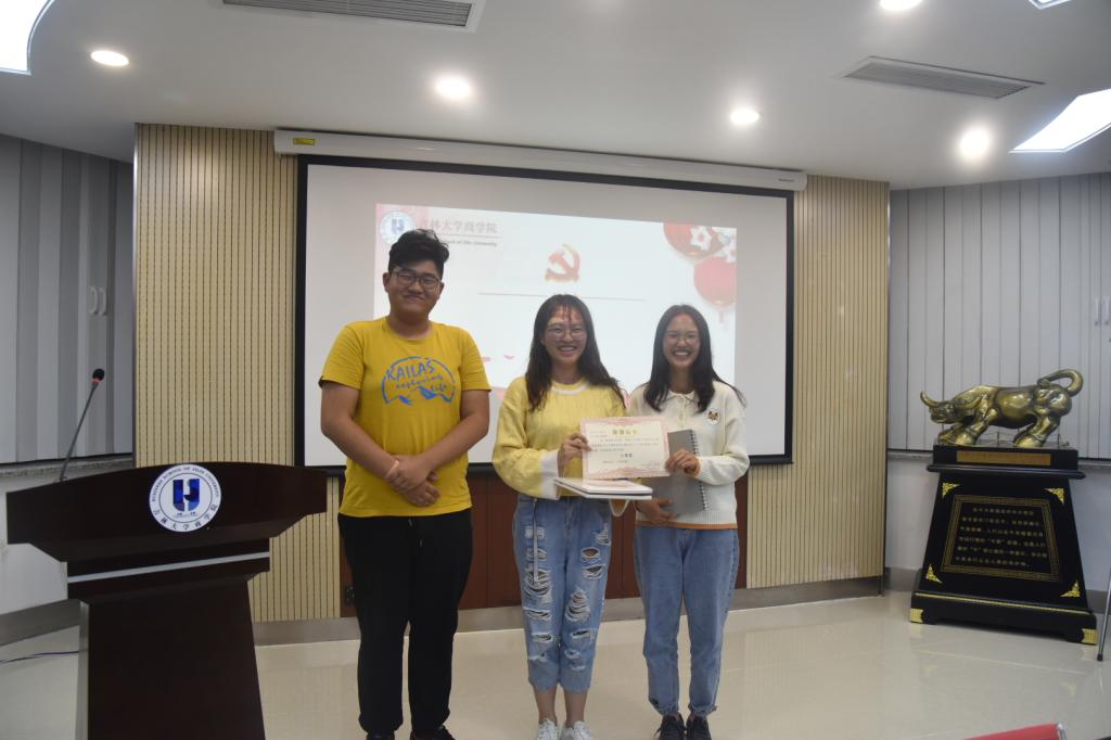 最后,现场得分统计完毕,由主持人宣布了一二三等奖的得主,并由此次的活动嘉宾给获奖同学进行颁奖并合影留念。