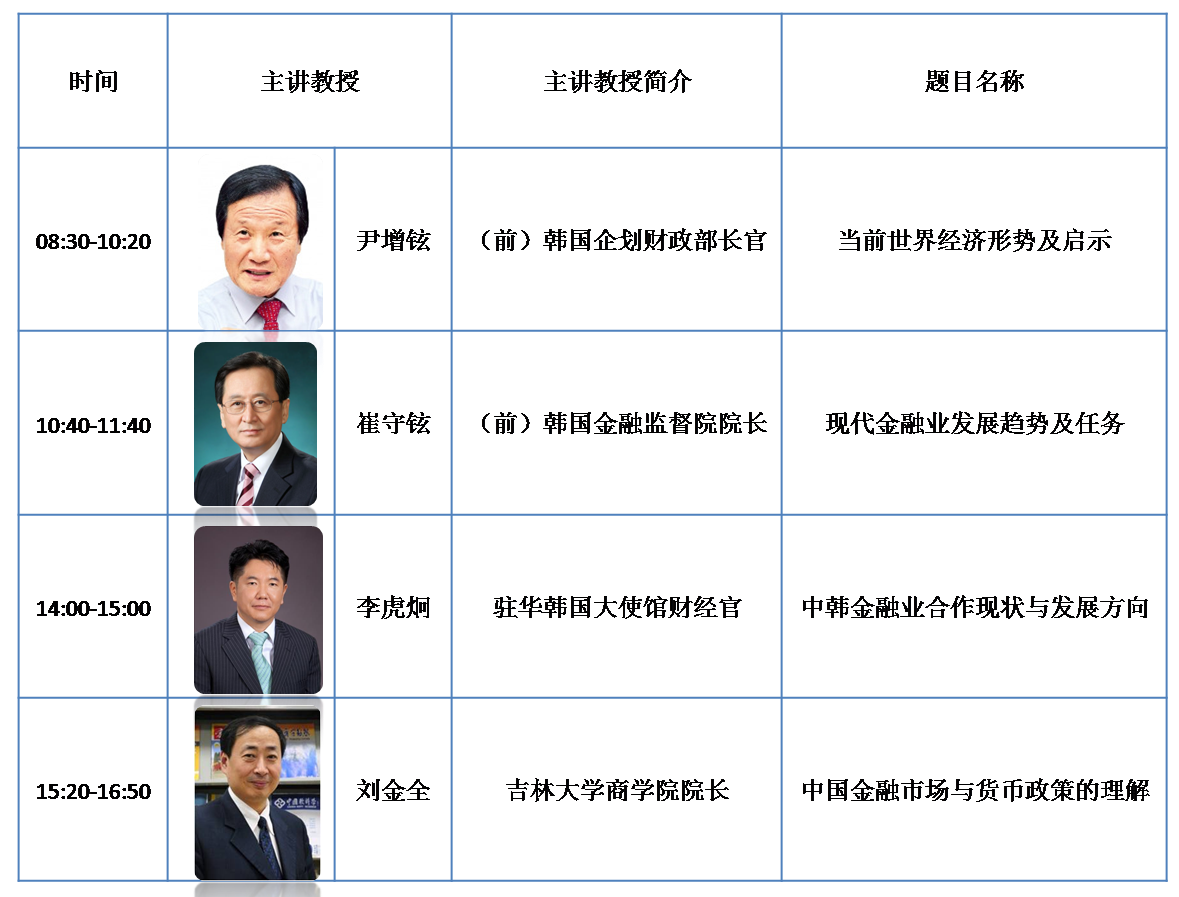 由中国·37000cm威尼斯与韩国·韩亚金融集团、中国·吉林银行共同主办的中国韩亚·吉林银行金融培训班2016年顺利进入第十一期,现将第十一期中国韩亚·吉林银行金融培训班开学典礼及首日授课安排公布如下,欢迎各位老师、同学们莅临授课现场!