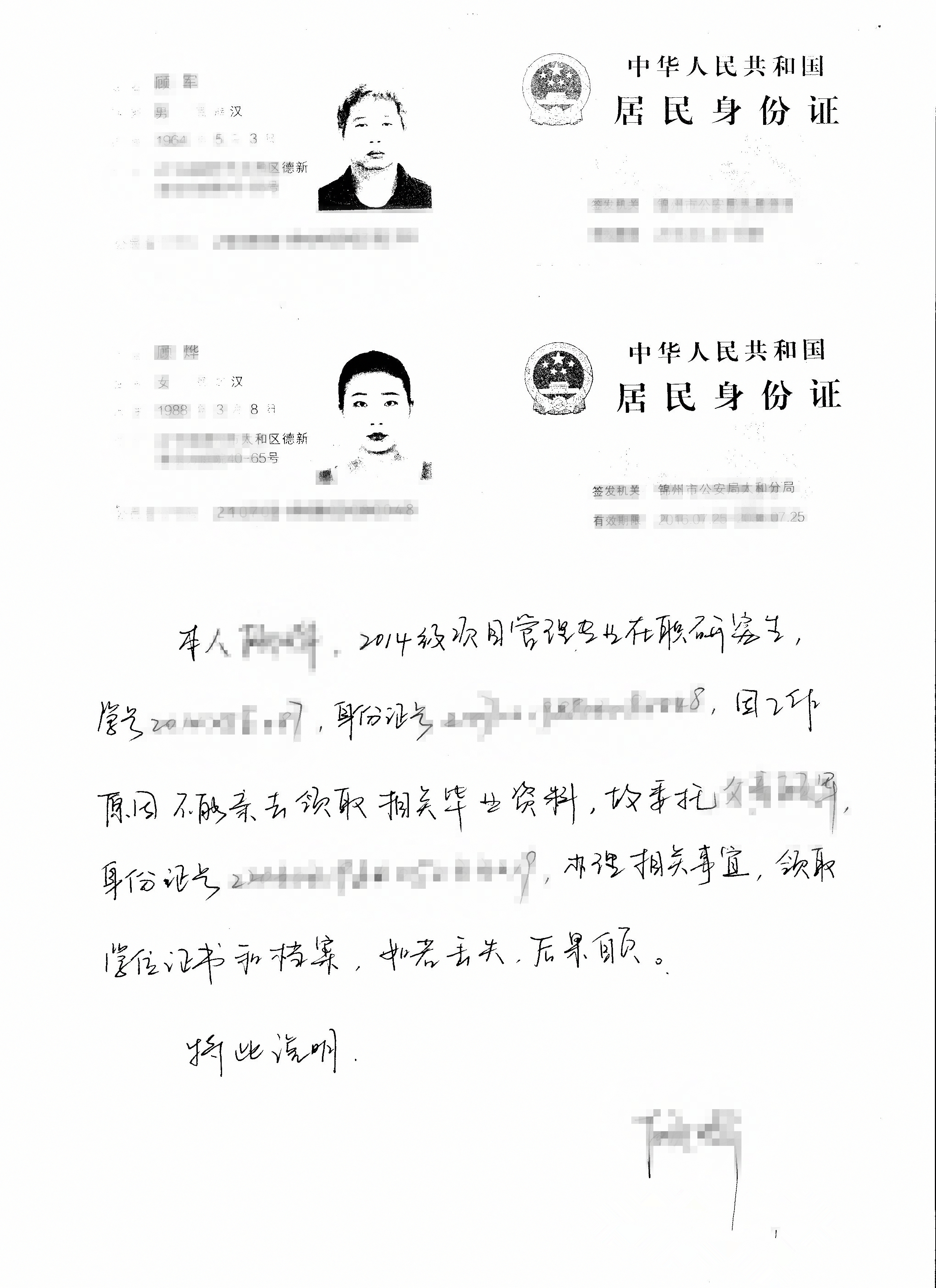 2.如有特殊原因,可代领。代领人需携带双方身份证复印件及毕业学员手写并签字的委托书一份,如有丢失,后果自负。